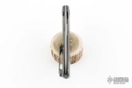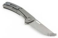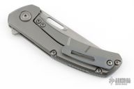 This Archer by Tactile Knife features a stonewashed blade with thumbhole and notched flipper. The handle has a feathered pattern anodized titanium frame, stonewashed titanium backspacer and tip up clip. Rides on bearings, nice detent, lockup and blade seating. Comes with original zippered case. Excellent condition.