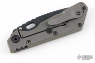 This SMF from Strider Knives features a black blade and gunner grip aluminum and bead blasted titanium handle and tip up titanium clip. Notches on thumbrest, rear of handle, and lockup. Includes Hinderer "Lock Bar Stabilizer" for maximum reverse lock retention. Has "NSN: 1095-01-531-5015" on blade. Nice action, detent and blade seating. Has a couple light scuffs and scratches, otherwise excellent condition.