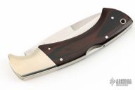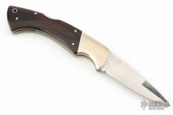 This knife by Pacific-Cutlery features a spear point blade with a nail nick and a notched thumbrest.  The handle features nickel silver bolsters/liners complemented by laminated scales. Has some scuffs and scratches, otherwise great condition.