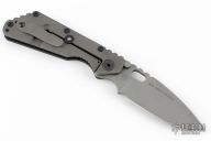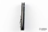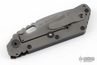 This SMF from Strider Knives features a bead blasted blade and black G10 and bead blasted titanium handle and anodized tip up titanium clip. Notches on thumbrest, rear of handle, and lockup. Includes Hinderer "Lock Bar Stabilizer" for maximum reverse lock retention. Has "NSN: 1095-01-531-5015" on blade. Nice action, detent and blade seating. Has a couple light scuffs and scratches, otherwise excellent condition.