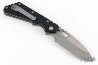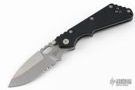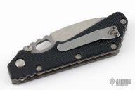 This is a Buck made Strider SNG Tarani has a stonewashed blade with notched thumbrest, thumbhole, partially serrated edge, and textured blade. The handle has textured black  scales, stainless steel liners and reversible tip up carry clip. Notching on thumbrest area and front/rear of handle provide a solid grip. Comes with buck/strider box and papers. Discontinued. Excellent Condition.