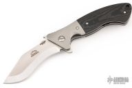 This MX-200 by Lucas Emerson features a satin finished recurve blade thumbdisc, wave and notched thumbrest, flipper. The handle has richlite scales, titanium liners, stainless steel tip up clip. Comes with original box and papers. Nice detent, lockup and blade seating. New from maker!