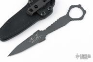 No frills, poking, prying goodness! The Bawidamann Ringed Needle Knife is not meant to be the fanciest piece of kit that you are scared to actually use and abuse, but a workhorse tool for when you need to get the job done! The Needle features a flat design with a smartly contoured profile. The ring, thumb ramps, butt end and jimping make for a super solid purchase in either a standard or reverse grip. The business end features a chisel ground double edge dagger profile that comes to a very nice point. The super slim line design makes the Needle easy to mount on your gear, carry on your waist, or throw in a pack or pocket. The Needle comes with a Chattanooga Leatherworks leather sheath with an IWB clip.