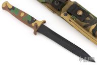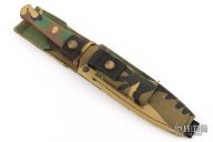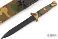 This Guardian II by Gerber features a double-edged black coated blade, .247" blade stock and .946" blade depth, hidden tang construction. The handle is camo coated cast aluminum. Comes with original nylon camo sheath. Has scuffs and scratches, great condition otherwise. #B64885