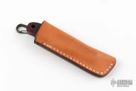 Hand polished, 2.7’ (71mm) VG-10 Damascus Clip Point Blade. Custom handcrafted, 4’ (100mm) "Hand sculpted" Desert Ironwood Handle. Comes with a custom handmade Brown Leather Slipcase / Sheath.