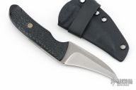 About the CT Model: Folders are great, but the fact is that they are nowhere near as quick and surefire to deploy as a fixed blade. The problem is carrying and concealing fixed blades. The CT is designed for front pocket carry or super discreet waist carry in non permissive environments. Toss this little guy in your front pocket or set up IWB, and you have a uber low profile, uber concealable, defensive tool. This CT is done up Pikal style with a reverse edge knife meant to be held in the reverse (ice pick) grip. The technique involves kind of a 'stab and rip' movements. This one features a wear hiding stonewashed finish and jigged micarta handle handle. Molded kydex sheath with IWB loop.