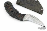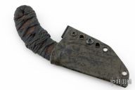 Folders are great, but the fact is that they are nowhere near as quick and surefire to deploy as a fixed blade. The problem is carrying and concealing fixed blades. The Sola Pado takes after Joe's Pikal stle blades and is designed for front pocket carry or super discreet waist carry in non permissive environments. Toss this little guy in your front pocket or set up IWB, and you have a uber low profile, uber concealable, defensive tool. This Sola Pado is done up Pikal style with a reverse edge knife meant to be held in the reverse (ice pick) grip. The technique involves kind of a 'stab and rip' movements. This one features an etched finish and resin cured black and green cord wrapped handle. Molded kydex sheath with IWB clip.