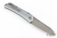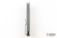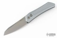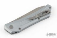This Oligarch by Pro-Tech Knives features a stonewashed wharncliffe shaped blade. The handle has a grey aluminum frame with a stainless deep carry tip up clip and a bead blasted button. Comes with original box and papers. New from maker.