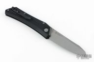 This Oligarch by Pro-Tech Knives features a stonewashed wharncliffe shaped blade. The handle has a black anodized aluminum frame with a black stainless deep carry tip up clip. Comes with original box and papers. New from maker!