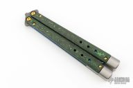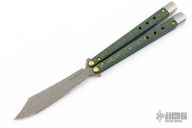 Harkening back to the ingenuity of Benchmade’s founder, Les de Asis, an unemployed craftsman who handmade the first Bali-Song® in his garage and turned the butterfly knife into an American-made icon, the new 99-242 Necron™ is a premium Gold Class ode to Les’s life’s work. Featuring our signature latchless design with adjustable weights, brushed titanium handle extensions, and blue anodized titanium liners, the 99-242 wields an elegant scimitar blade made of exclusive Monarch™ Damasteel®. With handles made of Jungle Wear Fatcarbon® — complete with a black alligator leather sheath — the 99-242 Necron™ just might steal the show.