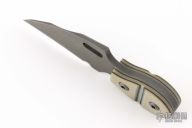 This Plan C from Mr. Horton features a chisel ground blade with swedge, .182" blade stock and 1.491" blade depth, full tang construction. The handle has black/bone paper micarta scales. New from Maker at the 2024 NCKS. Comes with original tube.