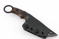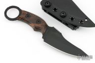 This GoonSquad by Freebooter Blades features a Socom black coated blade with .137" blade stock and 1.490" blade depth, full tang construction. The handle has orange/black Damascus G-10 scales with a ring at the butt. Comes with original box, papers and kydex sheath. New from maker. #0242