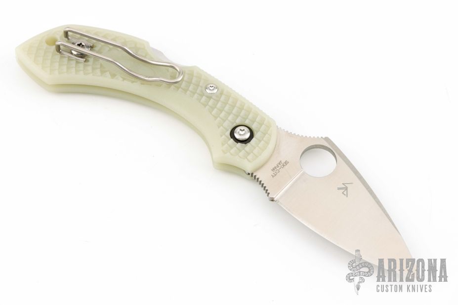 The defining feature of this unique knife is its handle, which is injection molded using glow-in-the-dark fiberglass-reinforced nylon (FRN). The tough, lightweight FRN material is enhanced with phosphor, a chemical that becomes energized when exposed to light and can then radiate its own visible light in the dark. Like all Dragonfly 2 handles, this one features Spyderco's signature Bi-Directional Texture™ pattern to ensure a secure, non-slip grip.