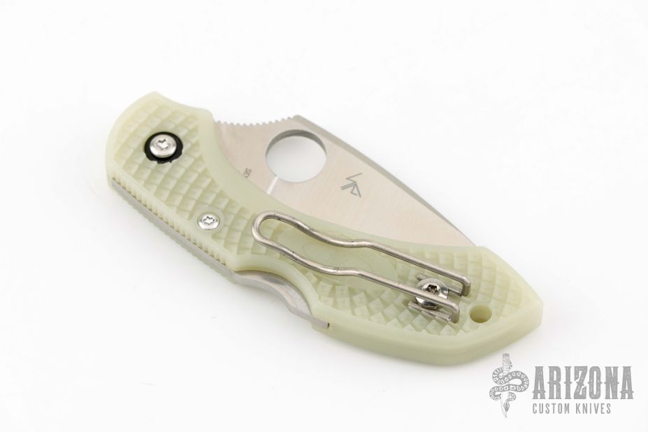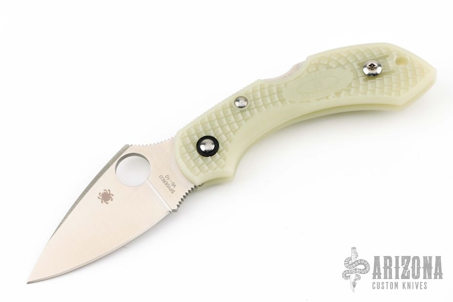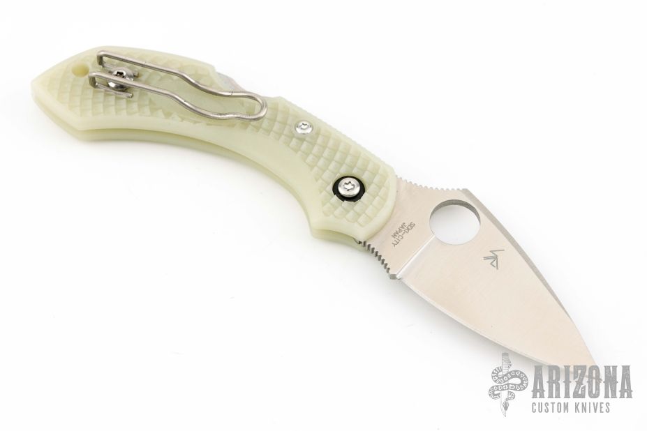 The defining feature of this unique knife is its handle, which is injection molded using glow-in-the-dark fiberglass-reinforced nylon (FRN). The tough, lightweight FRN material is enhanced with phosphor, a chemical that becomes energized when exposed to light and can then radiate its own visible light in the dark. Like all Dragonfly 2 handles, this one features Spyderco's signature Bi-Directional Texture™ pattern to ensure a secure, non-slip grip.