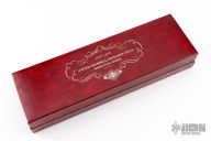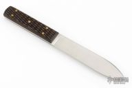 This Green River knife from J. Russel features a satin finish spear point blade with .128" blade stock and 1.139" blade depth, full tang construction. The handle has checkered wood scales with brass pins and escutcheon. Excellent condition. Comes with original box.