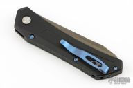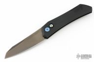 This Oligarch by Pro-Tech Knives features a black wharncliffe shaped blade. The handle has a black anodized aluminum frame with a blue titanium deep carry tip up clip, and matching hardware. Comes with original box, papers, and drawstring pouch. Excellent condition.