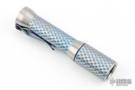 This Ion flashlight from Dawson Machine Craft features an aluminum body. 519A 4500K emitter. Reflector optic. Mineral window. Uses a single 14500 battery. Battery is not included.  This piece comes with a custom pouch and COA, dated 11/21/24.  New From Maker.