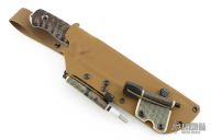 This Camp Knife by David Wesner features a satin finished blade with notched thumbrest, .235" blade stock and 1.780" blade depth, full tapered tang construction. The handle has canvas micarta scales with hollow pins and lanyard hole in the butt. Includes kydex sheath with TekLok and optional belt loop. Has some scratches, otherwise good condition.