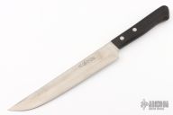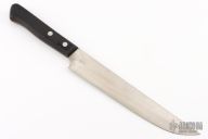 This Muteki by Carter features a satin finished laminated blade with a mortise tang construction, .098" blade stock and 1.290" Blade Depth.  The handle has a pinned wood grip. Comes with original box. Has some patina, and some scratches. Excellent condition otherwise.