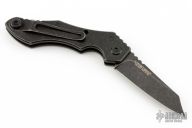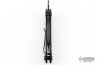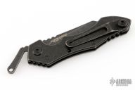 This Friction Folder by Quartermaster knives features a black stonewashed blade with notched thumbrest and friction bar. The handle has a black G-10 scale, black stonewashed titanium frame, tip up reversible stainless steel clip. Has a safety to keep the knife closed. Comes with original box and papers dated 3-14-18 and #20/300. Excellent condition.