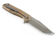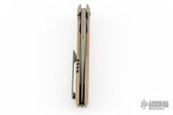 This Ragnarok V1 by Nick Chuprin features an acid-wash harpoon milled blade and flipper.  The handle has an anodized titanium frame with a zirconium tip up clip, hardware and backspacer.  Nice detent, lockup and blade seating. Comes with a zippered case and COA. S/N 49. New from maker!