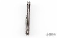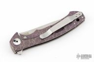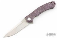 This 0450 Sinkevich designed folder from Zero Tolerance features a drop point blade with swedge and flipper. The handle has the original titanium frame that has been given rock pattern texture and tumbled and anodized, has stainless steel pocket clip. Excellent condition.