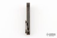 This Sigil by Microtech Knives features a partially serrated DLC blade with thumb hole, flipper and notched thumbrest. The handle has an anodized and stonewash finished titanium frame, tip up clip and backspacer with a copper overtravel stop, stainless lockface insert. Comes with original box and papers. Light scratches are visible on the handle and the blade otherwise the knife is in excellent condition. S/N 032 and dated 06/2017.