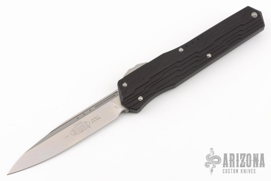 It's back and better than ever! Those familiar with Microtech's Cypher of old will be right at home with this new one: It features the same distinctive styling and premium build quality. But it diverges from the original in several awesome ways, starting with the double-spring drivetrain, which makes the blade deployment and retraction extremely smooth and easy. Contributing to the smoothness is the milling in the thumb slide cut-out, which breaks apart lint and other debris for more reliable action. Lastly, the Cypher II uses hidden fasteners, with only the large pocket clip lanyard hole screw visible. Add on the titanium pocket clip, and you've got a premium OTF knife at a very fair price!