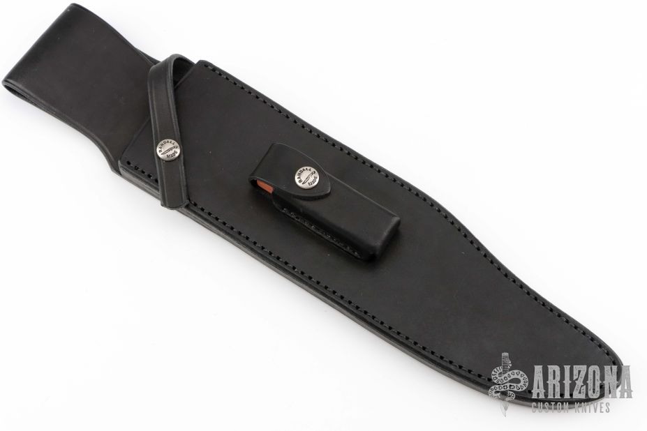 Randall Model 12-11C Smithsonian Bowie Black Leather Sheath. For a forward curved guard Smithsonian Bowie. Excellent condition