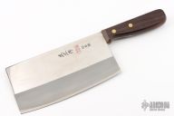 This Cleaver by Masahiro features a laminated steel blade with .110" blade stock and 3.425" blade depth, mortise tang construction with a wood handle. Comes with original box and papers. Excellent condition.
