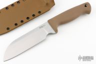 This DB-721 Prototype by Scrapyard features a satin finished blade .210" blade stock and 1.675" blade depth, hidden tang construction. The handle is rubber with a lanyard hole. Comes with a custom kydex sheath. Excellent condition.