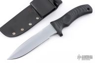This very difficult to find Voodoo Child by Mad Dog Knives has a hard chrome finished double edged blade with .250" blade stock and 1.253" blade depth, hidden tang construction. Selectively tempered,has a Rockwell C-scale hardness of 62 at the edge (as hard as a file), and HRC 50-54 throughout the spine and hidden full tang. The black G-10 handle is designed to be ergonomic and has the ability to withstand tremendous punishment with little or no damage. It is hard and tough enough to be used as an impact tool. Includes a Kydex sheath sheath. Excellent condition.