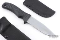 This Lab Rat #036 features a clip point hard chrome finished blade with .118" blade stock and 1.093" blade depth, hidden tang construction. The black G-10 handle is designed to be ergonomic and has the ability to withstand tremendous punishment with little or no damage. It is hard and tough enough to be used as an impact tool. Includes a Kydex sheath with belt loop and a kydex slip sheath. Has some scuffs and scratches, otherwise good condition.