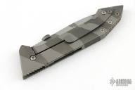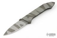 A smaller, lighter Sandstorm in a framelock style and full camo finish. File notched thumbrest and rear handle - a firm grip is assured. Opens easily, solid lockup. Very nice for pocket carry. Made by Mike Draper. Excellent condition.