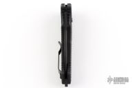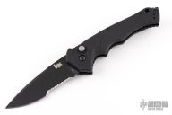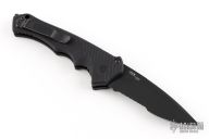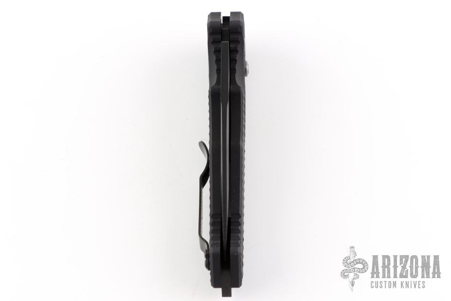 The Benchmade H&K MP5 auto knife was modeled after the late Benchmade Harley-Davidson Nonconformist automatic knife and was developed as a tribute to the legendary H&K MP5 firearm. The entire H&K line of knives are all manufactured by Benchmade and carry their limited lifetime warranty and are eligible for all Benchmade services. The black anodized machined aluminum handle incorporates style and sophistication with the bi-directional milling, ergonomic design and an extended back spacer that acts as a glass breaker. Additionally, the handle scale provides several precise jimping locations for multiple grip options and the knife has an integrated slide safety found on the spine of the handle. This model includes a premium 154CM stainless steel drop point blade with a black finish and serrations. The pocket clip is designed for tip up carry only and offers a left or right hand carry option. Made in the USA. Comes with original box and drawstring pouch. Has a couple light scuffs on the frame, otherwise Excellent condition.
