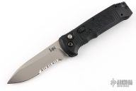 The Benchmade H&K Patrol family of knives have raised the bar in terms of value with quality materials and craftsmanship. The entire H&K line of knives are all manufactured by Benchmade and carry their limited lifetime warranty and are eligible for all Benchmade services. The composite nylon (Grivory) handle scales, coupled with stainless steel liners, are light weight and extremely durable and have an integrated safety switch and lanyard hole located near the base. This model, the 14430S, features D2 tool steel with a drop point partially serrated blade in a stonewash finish. The pocket clip is designed for tip up carry only and offers a left or right hand carry option. Made in the USA.