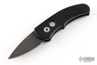This is a Runt J4 "Jalapeno" by Pro-Tech featuring a black handle and a black blade. Coil spring. California legal. PR2 s/n 714. Excellent condition. Comes with original box and papers.