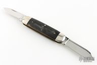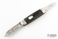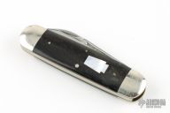 This slipjoint by Schatt and Morgan features two mirror finished blades with nail nicks.  The handle features nickel silver bolsters, brass liners and buffalo horn covers. Stainless steel springs. Has some scratches, otherwise good condition. Dated 2002