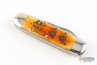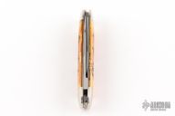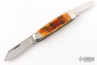 This slipjoint by Queen Cutlery features two mirror finished blades with nail nicks. The handle features nickel silver bolsters, brass liners and bone covers. Stainless steel springs. Has some light scratches, otherwise excellent condition.