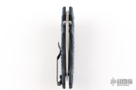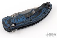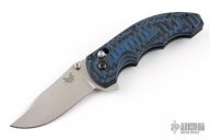 This Ball Axis lock flipper by Benchmade Knives features a stonewashed clip point blade with notched thumbrest and flipper and dual thumbstuds. The handle has black/blue G-10 scales with black stainless steel liners and tip up reversible clip. Excellent Condition.