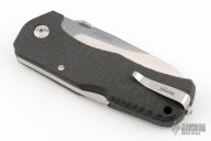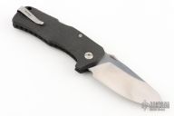 The LionSteel TM1 is another sensational design from Molletta. Like the SR1 and TiSpine, it has LionSteel's Solid® single-piece handle. While the previous monoblock folders were frame locks, the TM1 utilizes a double spring lockback mechanism. One of the benefits of a lockback knife, and the TM1 in particular, is the ambidextrous design that enables ease of use for both right and left-handed users. As such, the TM1 is outfitted with a reversible pocket clip for tip-up carry. Closer inspection of the pocket clip will reveal a tungsten carbide glass breaker for use in emergency situations. Another first for LionSteel is the IKBS ball-bearing pivot, which adds to the refinement of this special folder by ensuring top-notch action and performance. The reverse tanto style blade has an ambidextrous thumb disc opener that complements the overall design quite well. The TM1 is certainly destined for greatness. Excellent condition.