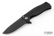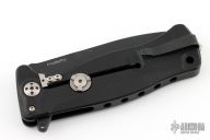 This SR11 by Lion Steel features a black finished blade with flipper. The handle has a milled and anodized aluminum integral frame with tip up reversible stainless steel clip, has Rotolock and a stainless lockface insert. Has some scuffs and dings, otherwise good condition. Comes with a leather case.