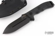 This Crosshair by Microtech has a black double edged blade with a standard edges and a black handle. Full tang construction. Comes with kydex sheath. Excellent condition. Dated 09/2009 and #089.