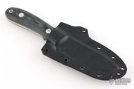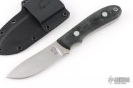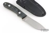 This K-2 General Purpose Knife by Dozier Knives features a satin finished blade with .133" blade stock and 1.046" blade depth, full tang construction. The handle has black linen micarta scales with aluminum pins and lanyard hole. Comes with kydex sheath with belt clip. New from maker.