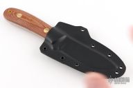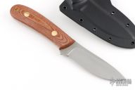 This K-5 King's River Skinner by Dozier Knives features a satin finished blade with .136" blade stock and 1.039" blade depth, full tang construction. The handle has natural canvas micarta scales with brass pins and lanyard hole. Comes with kydex sheath with belt clip. New from maker.