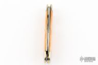 Often called a balloon half-whittler, the knife has a clip point main blade and a pen as the secondary. Both blades work off of a single, double-ended backspring. The main blade has a long-pull and the secondary has a nail-nick. The shield is our trademark BOOT which is ONLY found on our SFO’s from Great Eastern Cutlery.
