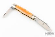 Olde Towne Cutlery Great Eastern Cutlery Special Factory order. Pattern #321224 balloon half-whittler, in a dyed burnt-orange camel bone handle. This is a Pattern Production Premier too, as indicated by the Three-P etching on the blade.
