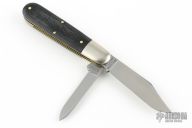 This GEC Tidioute #78 Bullet End Barlow GPKNIVES SFO comes with two satin finished blades made from 1095 carbon steel and has black canvas micarta handle scales. Each bolster is individually serialized and each clip point blade has our Piasa Bird logo.