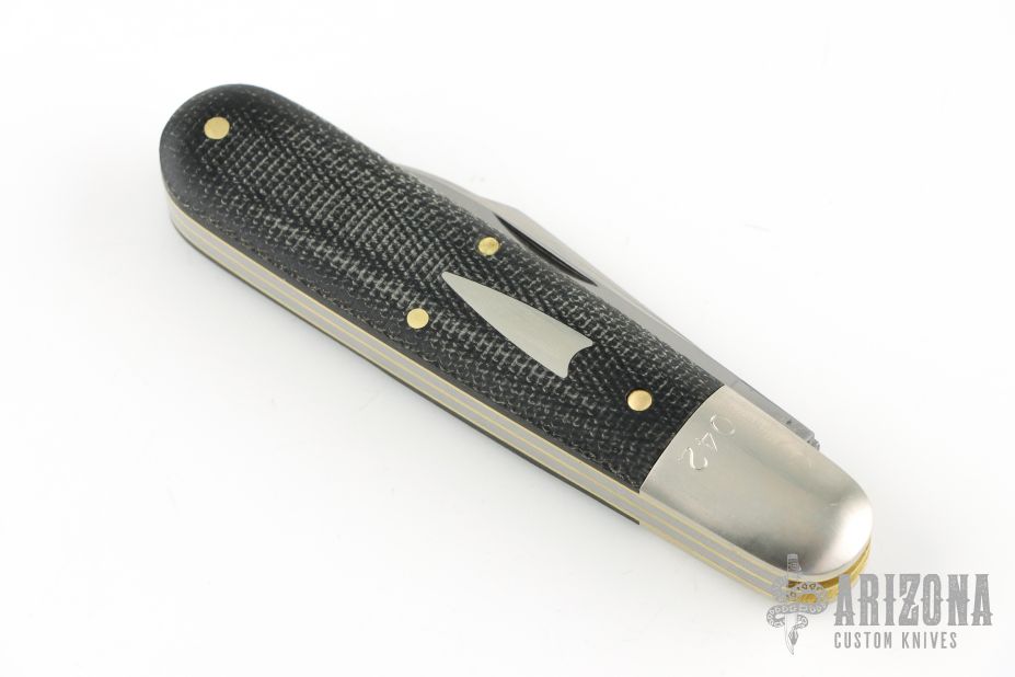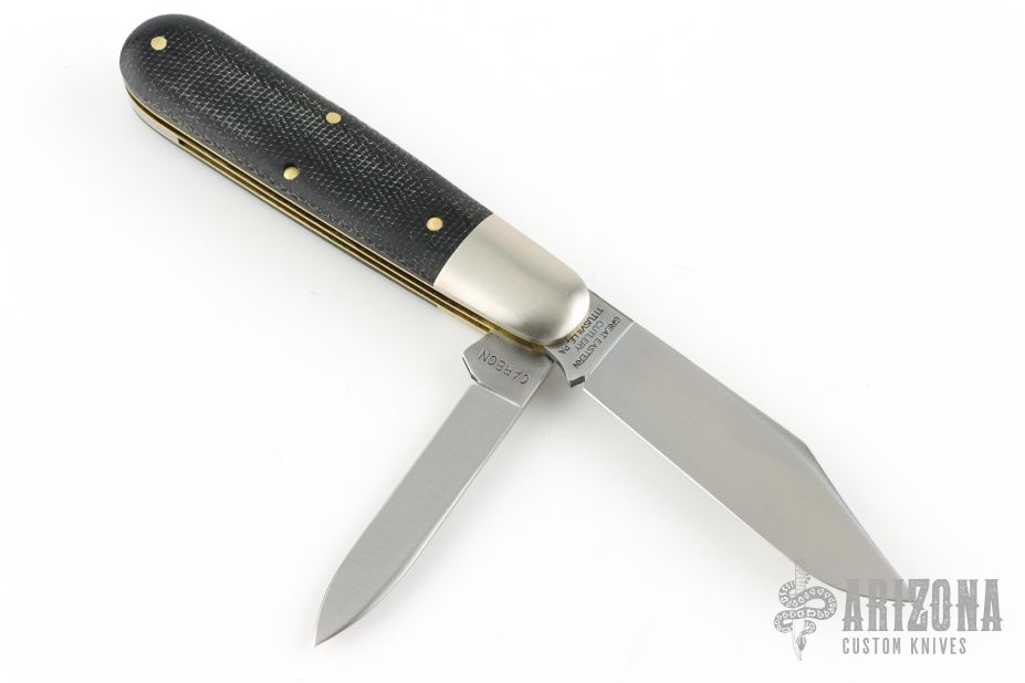 This GEC Tidioute #78 Bullet End Barlow GPKNIVES SFO comes with two satin finished blades made from 1095 carbon steel and has black canvas micarta handle scales. Each bolster is individually serialized and each clip point blade has our Piasa Bird logo.