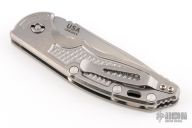 This XM-18 Flipper by Rick Hinderer Knives features a 3.5" stonewashed finish blade, notched thumbrest and flipper.  The handle has a stonewashed titanium frame with a matching tip up pocket clip.  Includes original box and papers. Excellent condition.